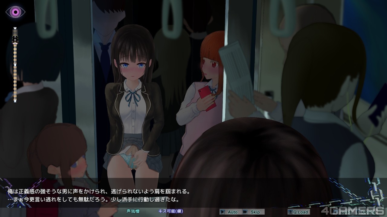 从电车门边的站立场景开始,随着对女主角的「支配度」增加,将解锁之后的「车内后部」与「车厢座位」两个场景。