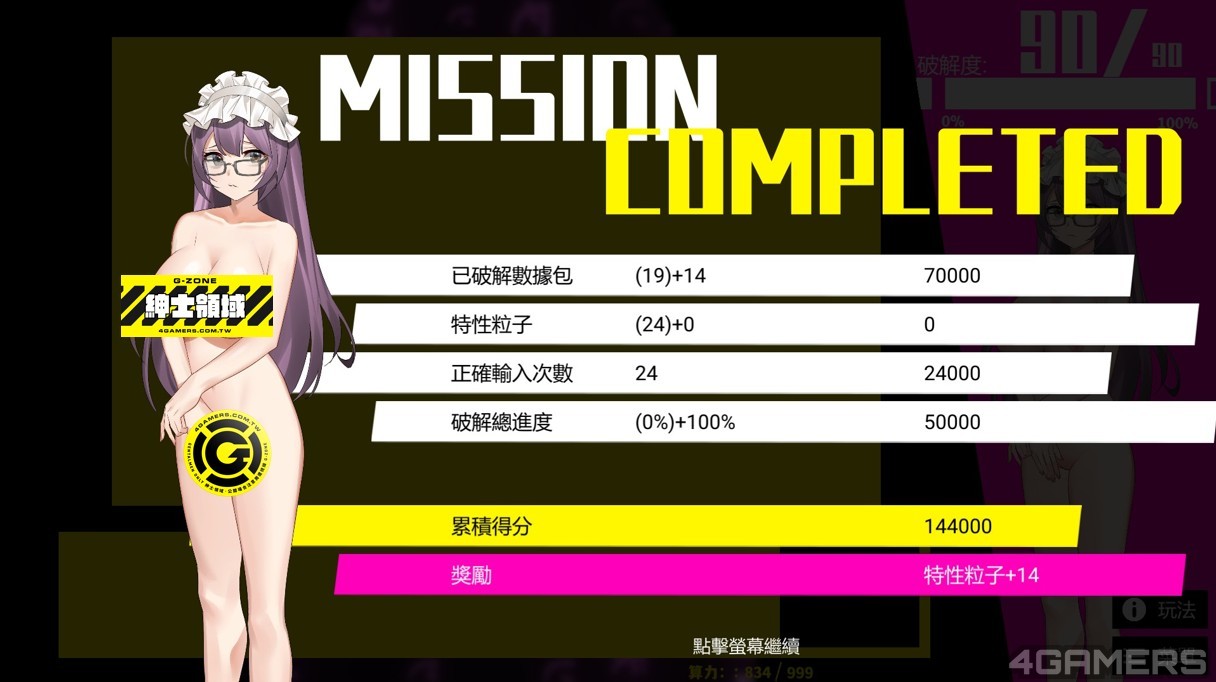 在开始破译前,这些黄色与紫色的方块称为「资料包」,其实就是游戏玩法消除的方块。消除紫色方块会削减玩家的「算力」(类似玩家 HP),并增加破解进度。玩家的目的就是要在算力耗尽前,达成破解数据需求的数值。