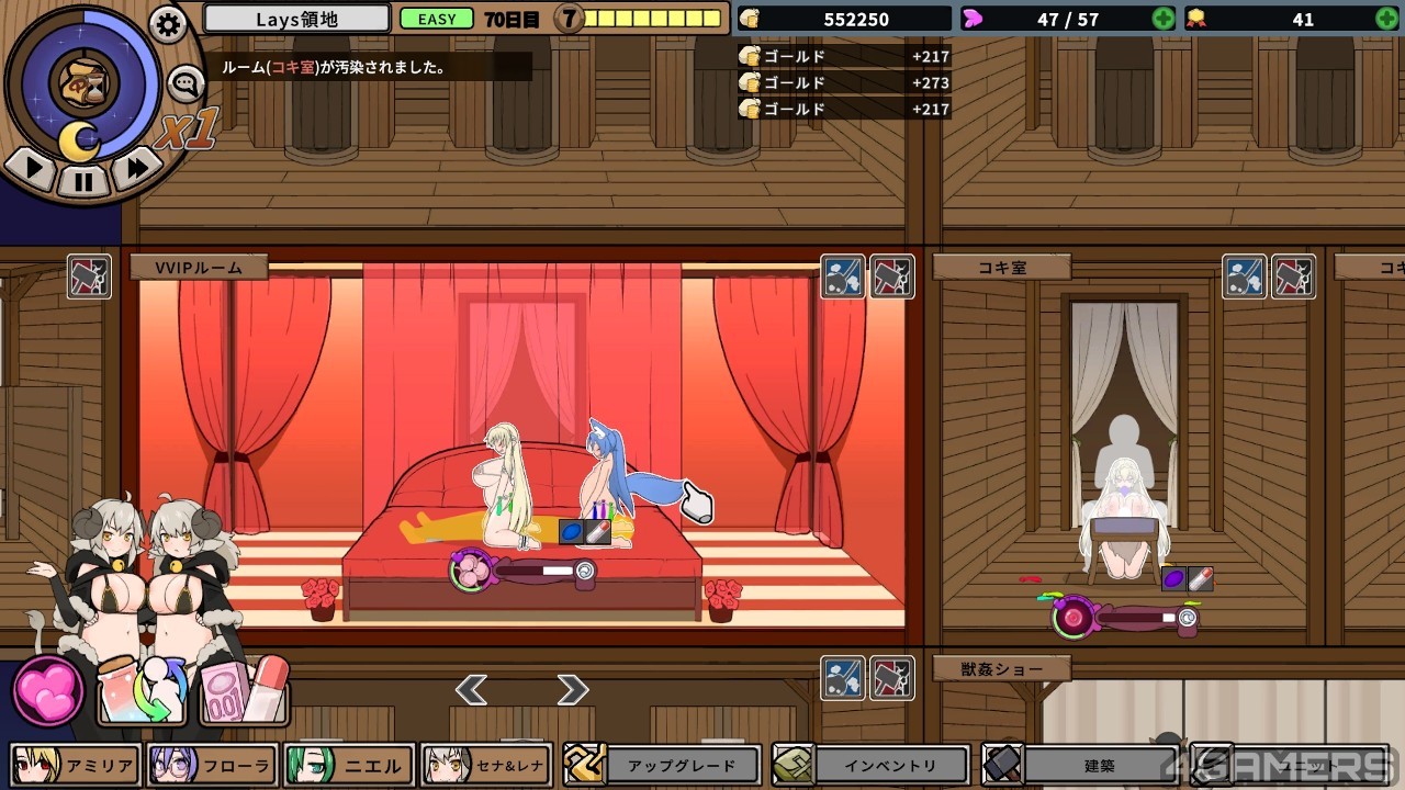 本作除了配种玩法外,进行一段时间后也会解锁妓院的部分,虽然 H 动画并不算多种,不过也能为一直以来较为灰暗的监禁凌辱流程带来一些感受上的调剂。