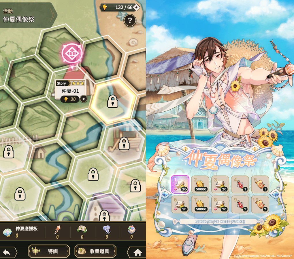 此外,玩家亦需要透过不同的「应援项目」,收集指定素材提升特定角色的应援等级,提高挑战地格关卡的优势。