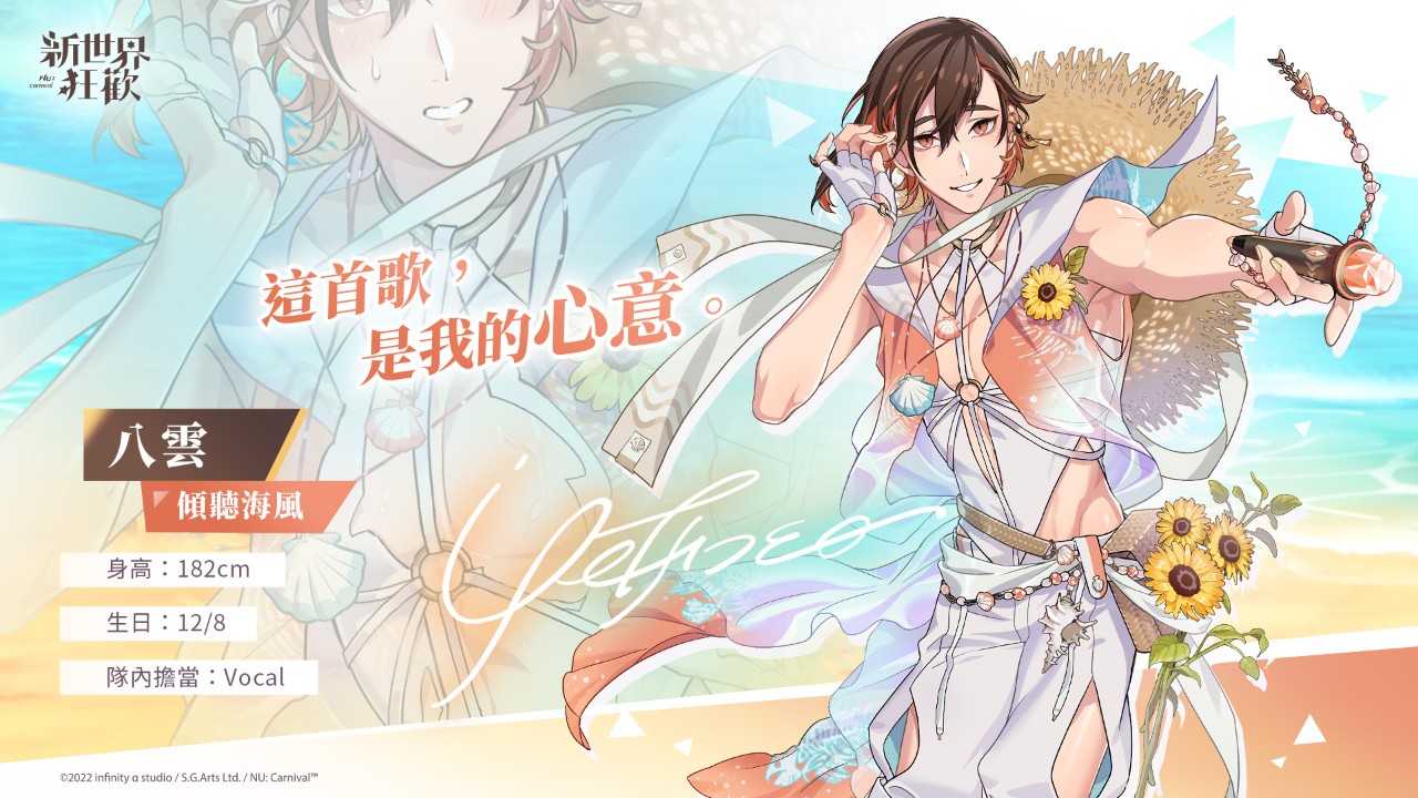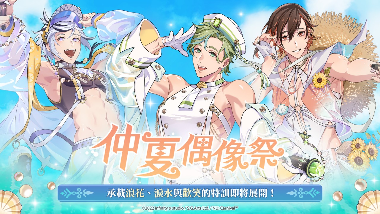 迎接北半球夏天来临,成人 BL 手机游戏《新世界狂欢》开启全新活动「仲夏偶像祭」。主角伊得将化身偶像团体经纪人,带领八云、奥利文、与布儡一起突破重重困难,朝王国第一的人气偶像目标迈进!