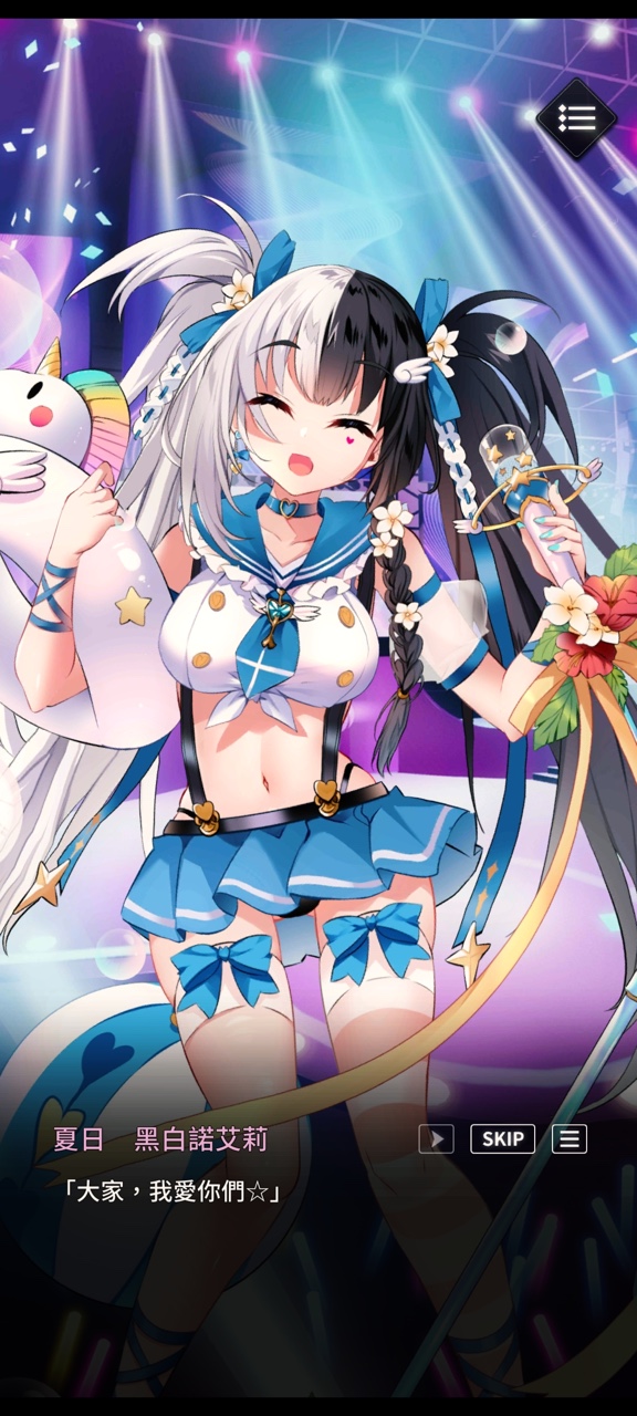 黑白诺艾利身为偶像自然是不会错过这次的夏日盛事,为了酷暑和炎热而烦恼的人们,诺艾利打算挺身而出为人们带来希望和梦想,在这次的渡假村改建王活动中大显身手,在目前的应援榜中暂时位居第二。