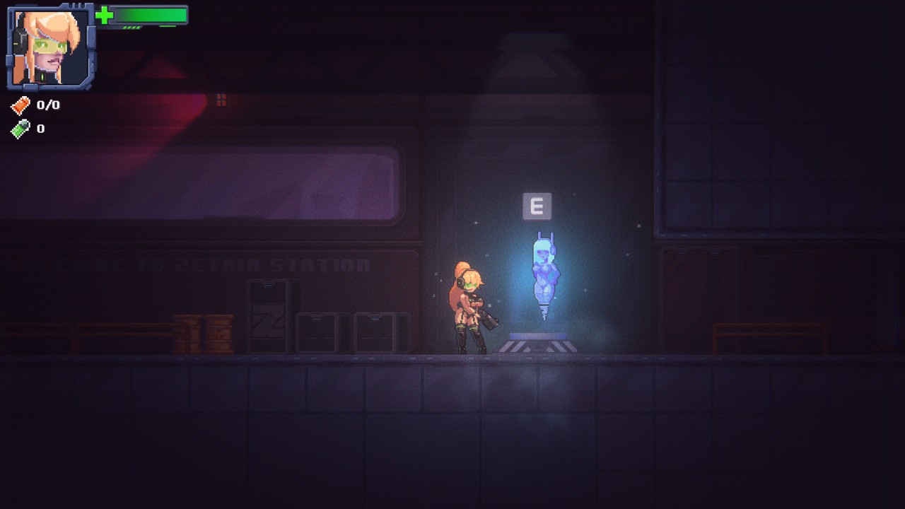 《Zetria》的武器弹药有限,弹药用尽的女主角只能用近战攻击,玩家必须活用二段跳跃并观察周遭设施来解谜,途中还有机会解救受困的女性队员。