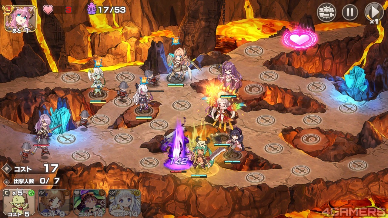 近战主要担任肉盾卡怪的工作、远程包括射手与法师,可以依需要进行对空与 AOE 类型的输出工作;而补师则进行上 Buff 跟补血的工作。由于远程与补师的格子重叠,因此如何组合出火力与血量的平衡站位相当重要。