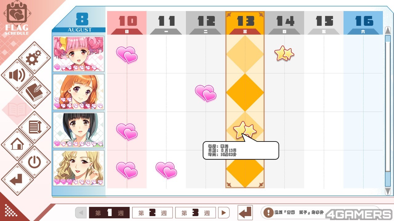 再者,本游戏会互相影响的角色很多,到中期可能一些角色会因为没有达成攻略条件而锁起来,或是无法如愿提升好感度,完全照着清单执行可能会「多头空」,建议平常游玩时谨慎参考 Flag 清单。
