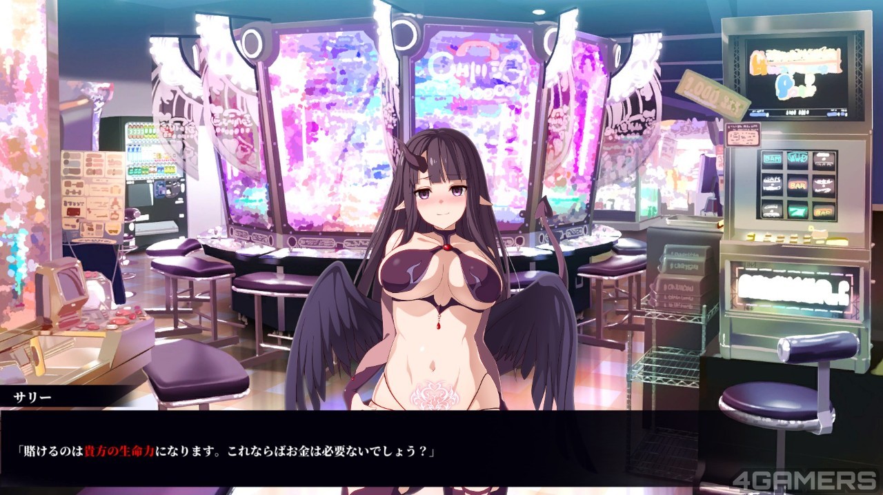 莎莉提议主角可以到淫魔们开设的赌场里面想办法赚钱返还债务,还可以住在提供的旅馆躲藏追兵。主角也是只好死马当活马医,因为主角没有本金,但是淫魔们可以让主角用「生命力」来支付房费与赌金。