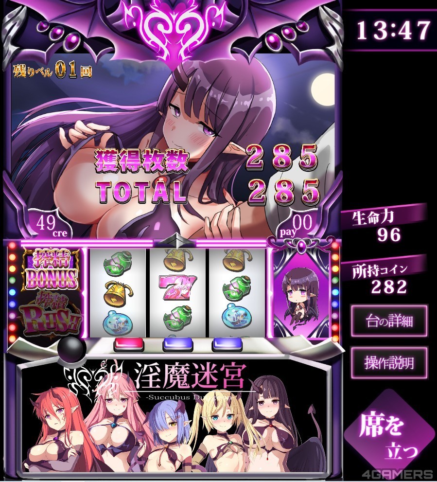 在日本大城市的车站旁常常会看到许多大型的游艺店,相信去旅游的大家都很好奇,但又不是很想进去(通常非常吵又有烟味)。这款《淫魔柏青嫂》(淫魔回胴録)在某种程度上複製了日式柏青嫂的玩法,可以让各位绅士无痛体验一下。