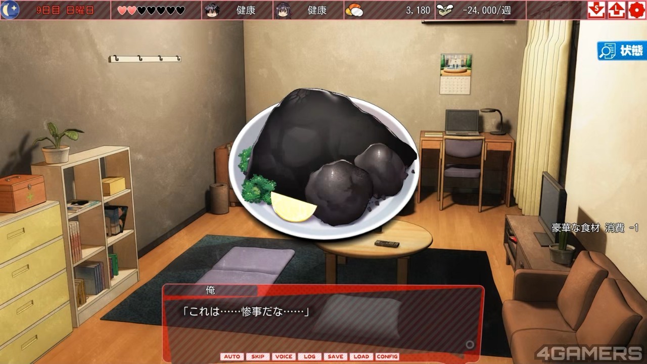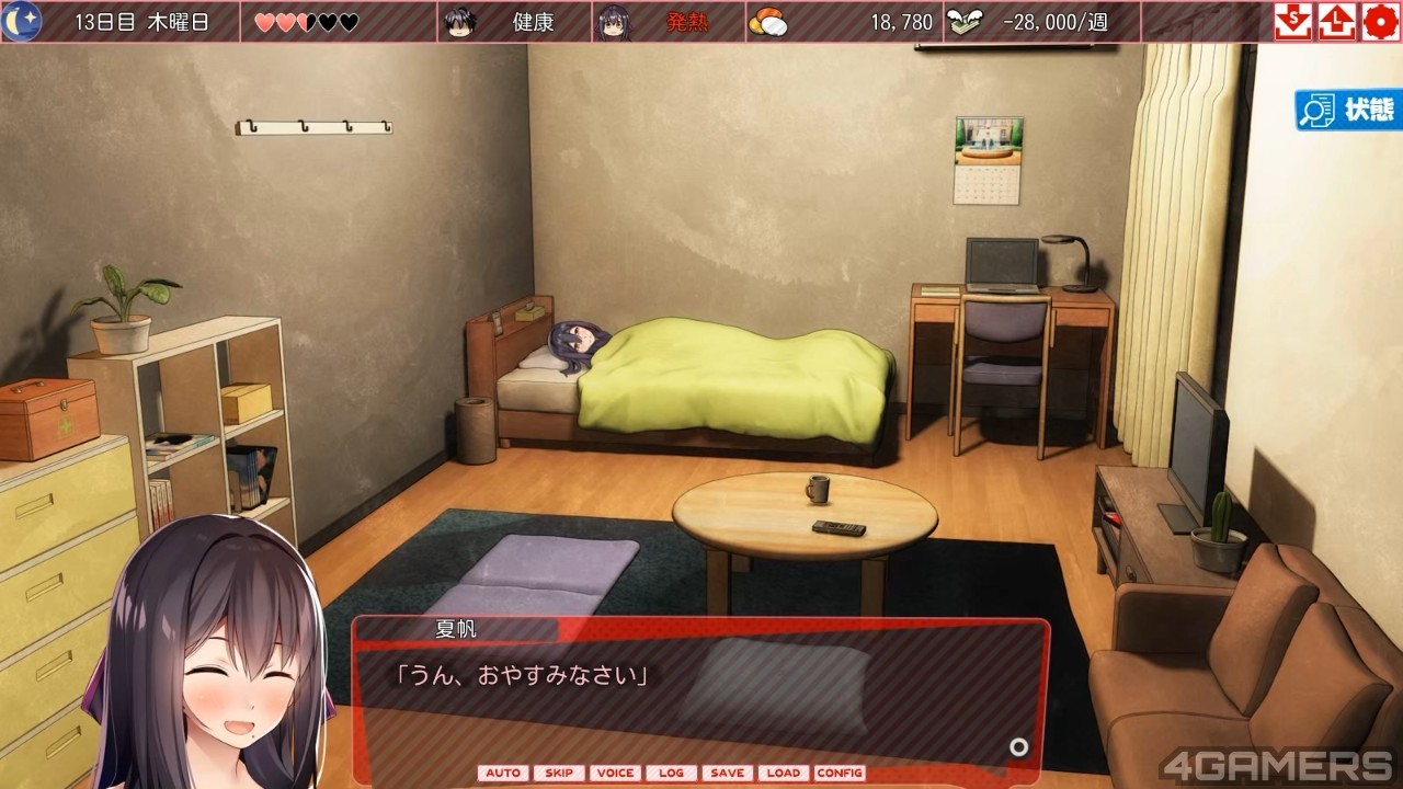 且由于游戏进度的判定条件是以存款量为基础,再加上时不时就会因为夏帆料理失败、营养不良、身体不适等随机性的理由而产生额外的花费,所以这游戏基本上就是不停地在花钱买健康以及赚钱拚经济之间游走,虽然没有时间限制,老实说起来其实相当需要耐性呢。