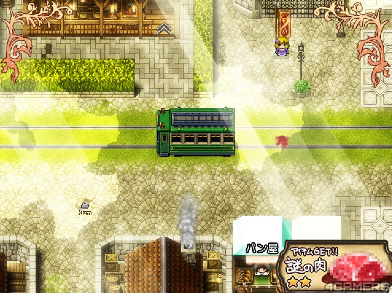 还有就是玩家城镇跟迷宫之间有着一个可以快速移动的电车系统,基本上算是个节省玩家移动时间的德政,只是每次电车开起来的时候,会把路上的 NPC 辗爆(还配上一声ㄆㄐ的音效),然后玩家就会得到一块「谜之肉」,做「极致燻製肉」的时候还需要这块肉,客人吃了之后还讚不绝口…