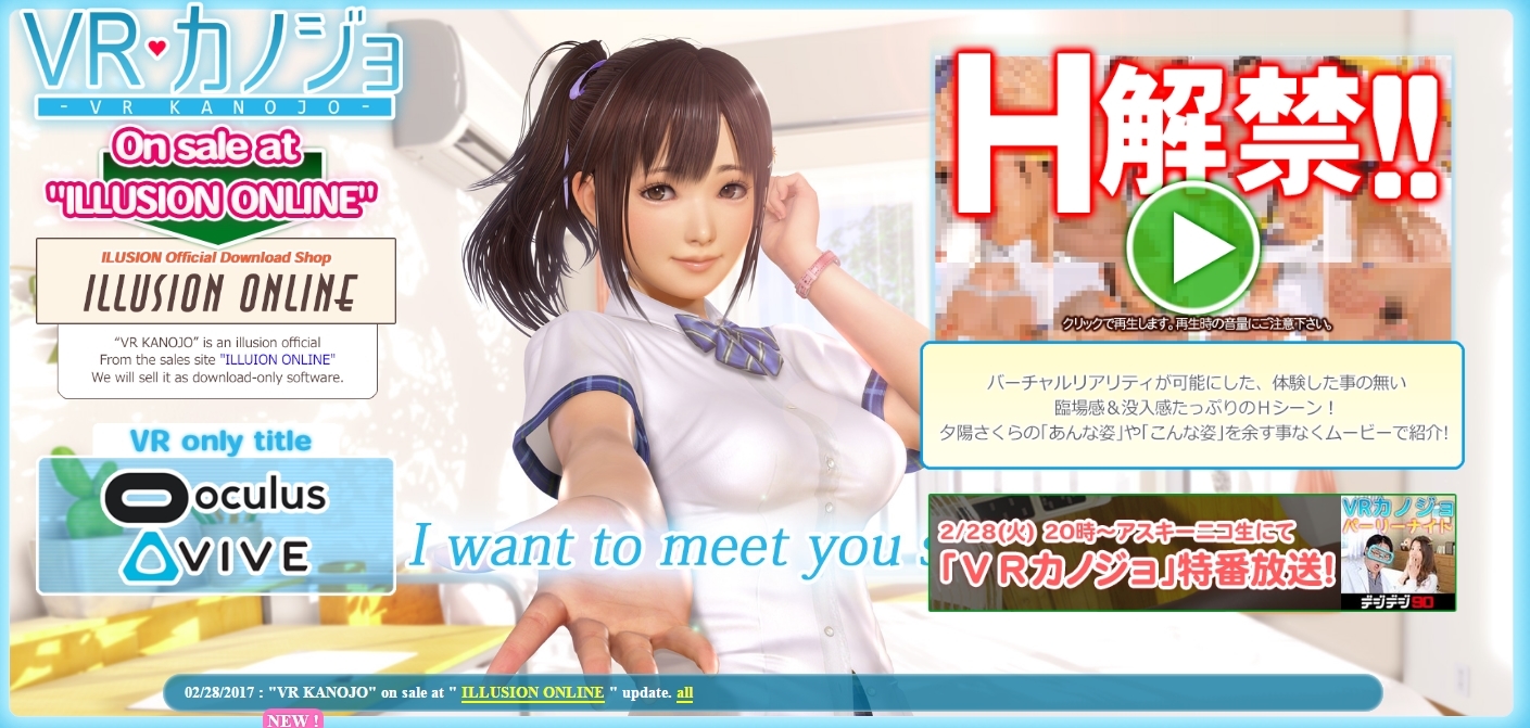 《VR 女友》现正于 Illusion DL Shop 上以下载方式贩售,游戏操作适用 Oculus Rift 与 HTC Vive 平台,Steam 商店目前暂时还未上架。各位绅士们还等什幺呢?小樱已经在等你了唷!
