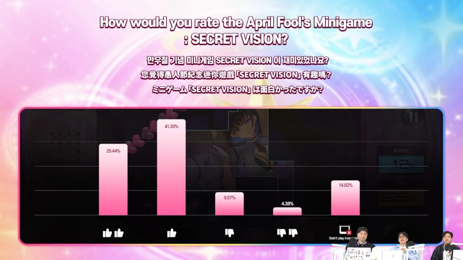 愚人节纪念活动「SECRET VISION」的插画奖励以及怀旧感受到了肯定,不过也有玩家认为这个小游戏的判定和操作手感不好。