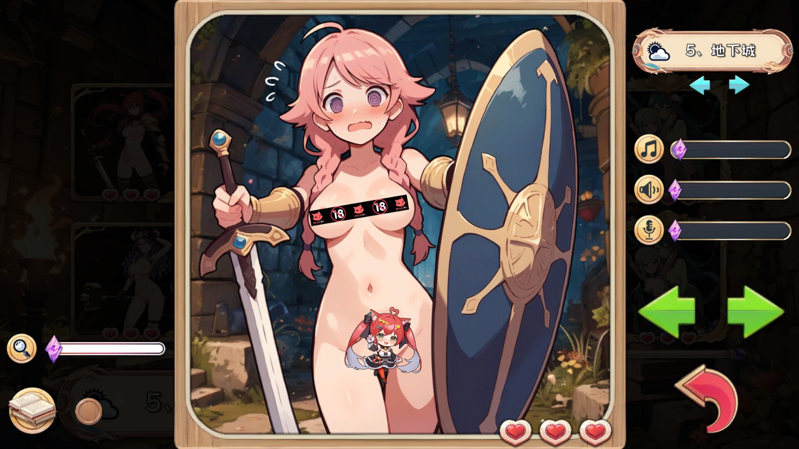 你需要左右移动滑鼠控制画面底下的魔杖,让能量球的轨迹以「打砖块」的方式消除马赛克。过程中可以使用魔法,清除完马赛克后就能帮助美少女冒险者们「逃离」马赛克的魔掌。