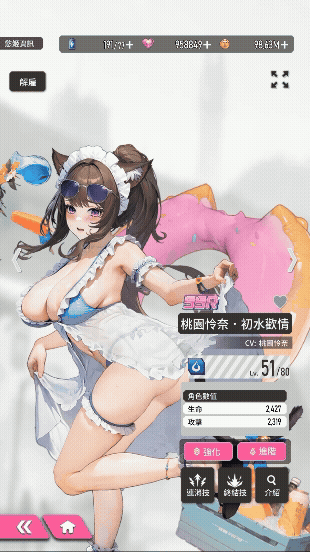 在众多后宫佳丽当中,最受玩家瞩目的,便是日本 AV 女神桃园怜奈的联动角色,她不仅化身为猫娘慾姬登场,还变身泳装(初水欢情)、女僕(点心时光)、宅女(巨蕉纯喵)三种装扮。
