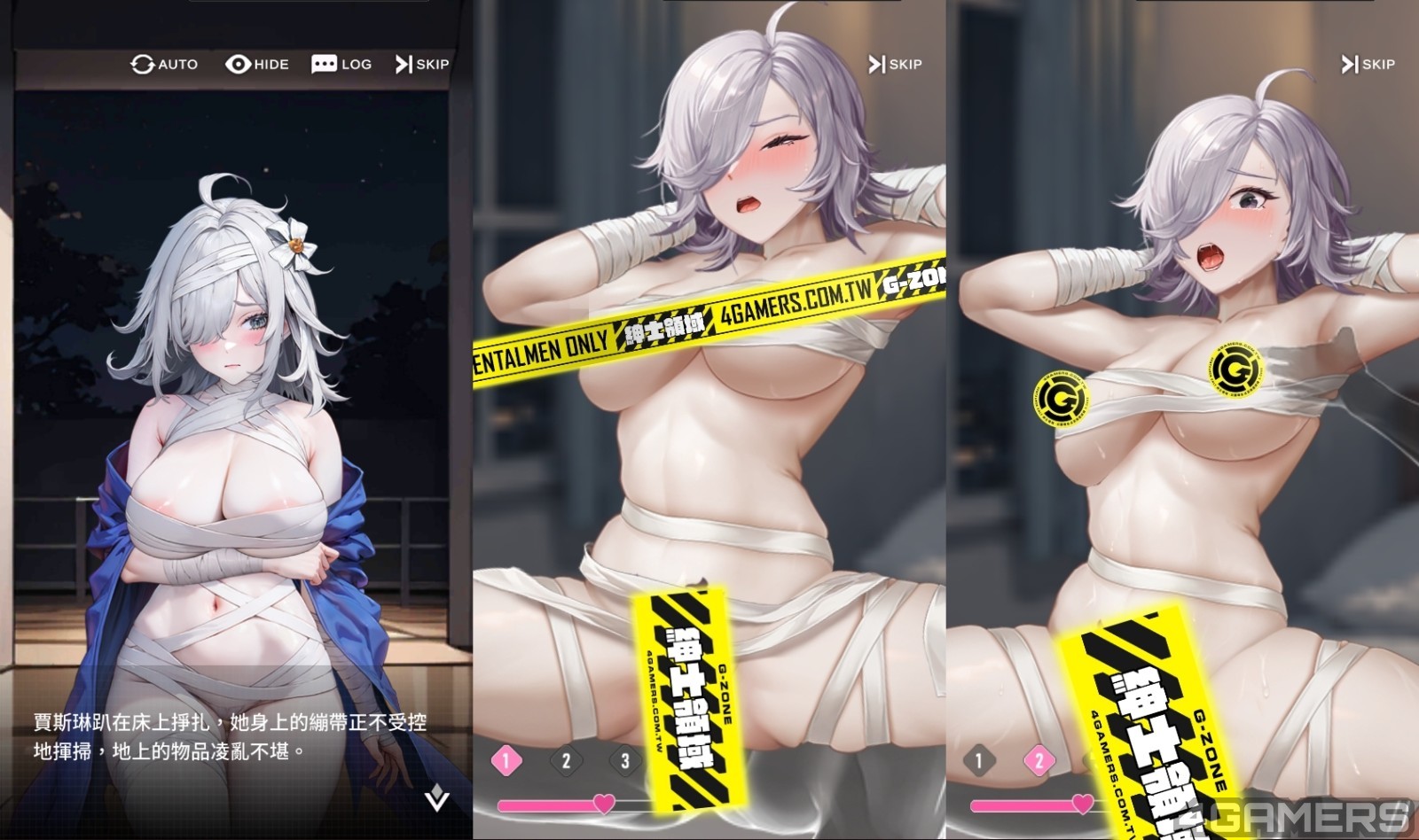 如果猴急的玩家只想快点大爆射,游戏也提供「自由模式」,在好感度达 100% 后与专属 H 剧情一併解锁,跟多数黄油一样,有三段式渐进 CG,透过爱心摇桿调整动作速度及表情差分。
