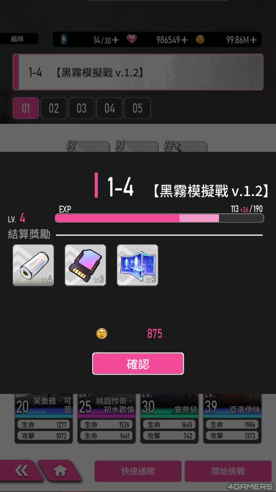 每当玩家完成一整个章节,就能解锁该章节的「困难模式」,困难版关卡更易掉落强化素材与金钱,虽然战斗没自动模式,但破关一次后都可以透过「快速通关」刷素材。