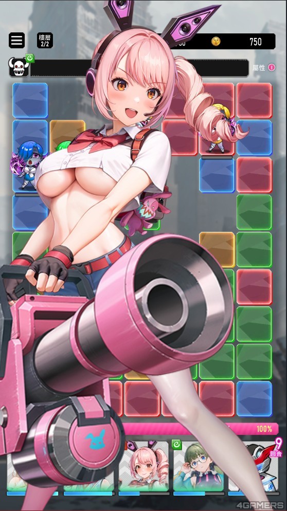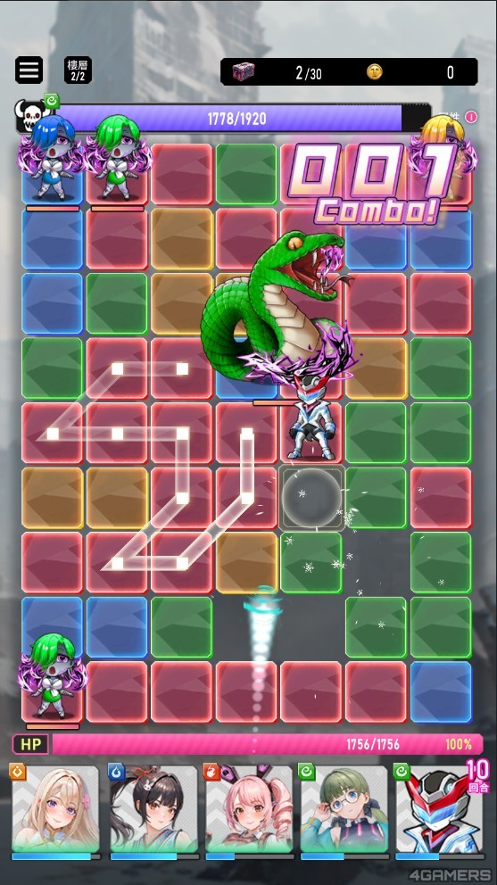 况且九宫格的同色方块都能画,COMBO 数超过一定数量将能触发被动的「消除技」,慾姬也会在回合间累积「终结技」能量条,在适当时机发动,就能将敌人全部带走。