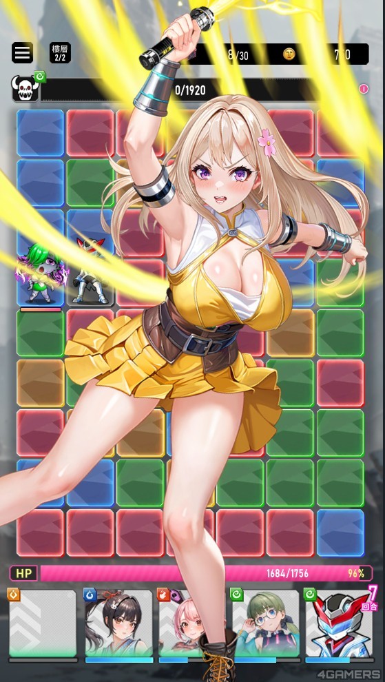 战斗系统方面,融合消除与回合策略,爽快度与深度并存。虽然没有自动战斗系统,剧情与战斗节奏较缓慢,但能够关闭动画演出。角色养成部分,资源需求高、武器升阶素材需花一些时间刷关卡。