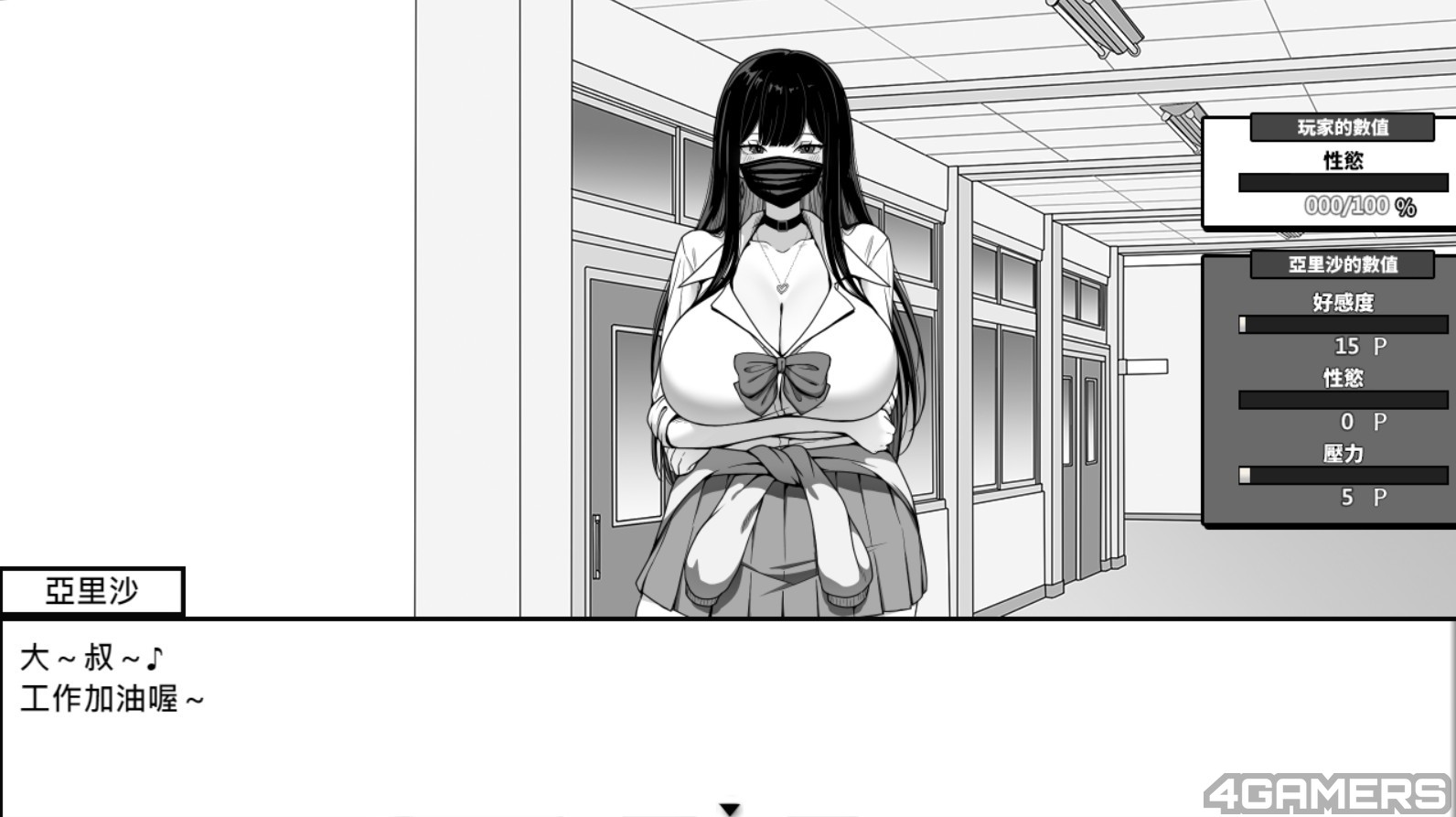 而说到玩法,《在校工室与JK共度的日常》算是相当轻度的策略模拟点击选择,甚至连策略都称不上,因为对话的互动基本上惩罚性不高,主要几乎能让玩家每一个对话都按过一次,然后累积信赖度前往下一个剧情阶段。