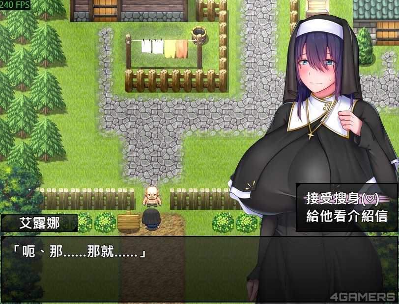 而游戏另一个视角会阶段切换至另一位年轻修女埃菈,初期她为了保护艾露娜不被骚扰而展开行动,但最终还是难以逃离一同堕落的走向。