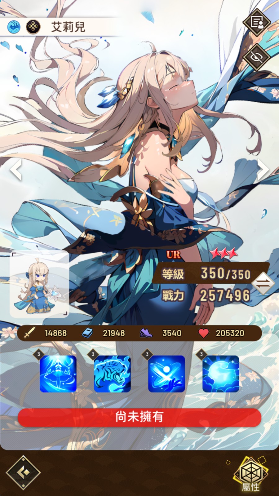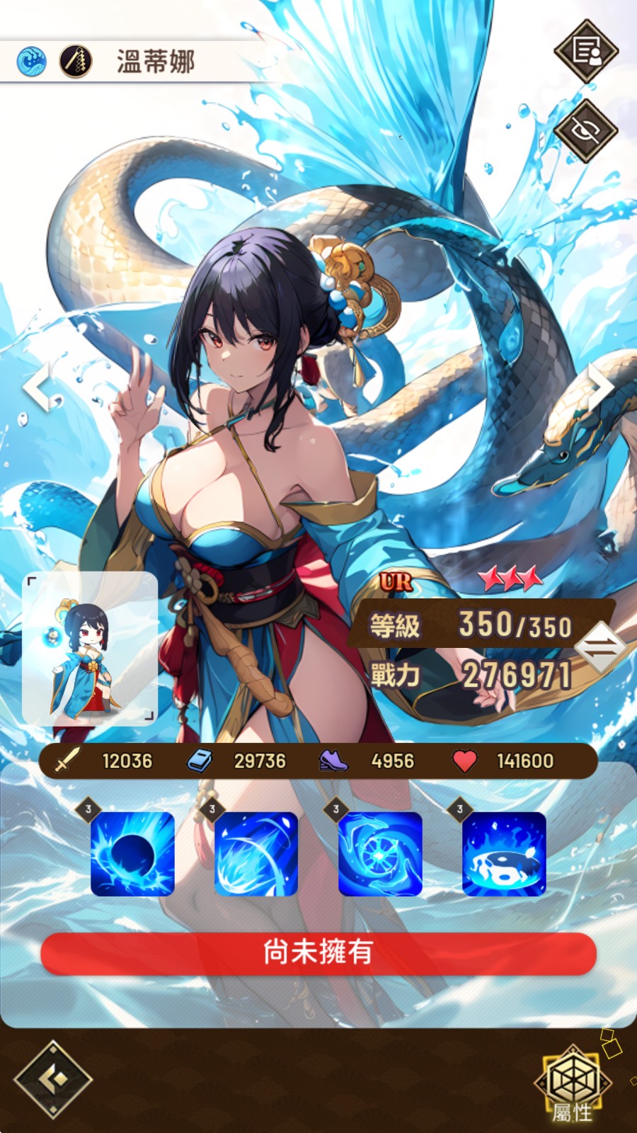 温蒂娜是最正统的 SSR 法师,输出并非最高,但机制最容易配合,只要处于水队中就能大幅度增加伤害,还有给全队上护盾的效果,对新手来说是最好操作的一名。