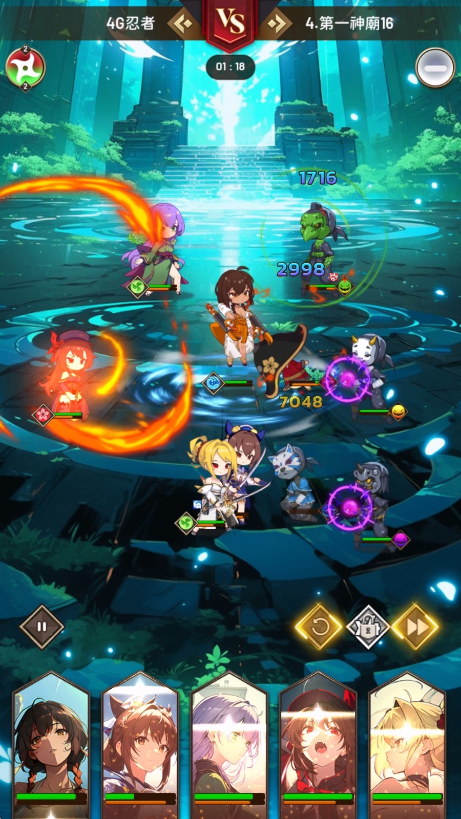 由于每一关的配置都不同,且角色分为坦克、战士、法师、辅助四个职能,以及有着火、水、风、光、暗五种属性的属性克制,所以玩家除了可以自由地决定施放的时机和角色的站位,还必须根据属性和职能安排站位才能通关。