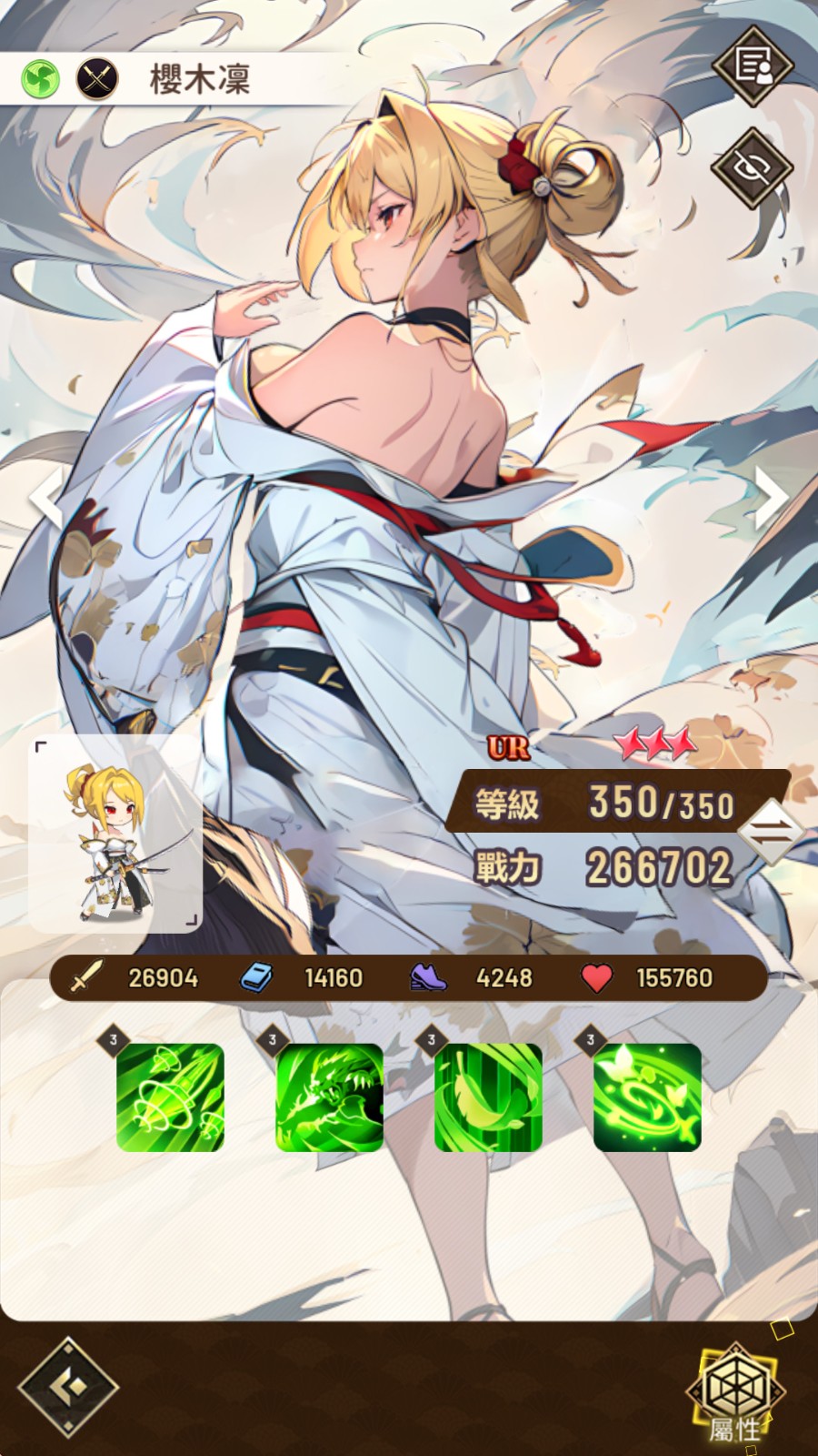 后者樱木凛则完全相反,她是输出最高的战士,但也是最软的一个。全身上下毫无任何防御性能力,但特色是主动技用完后会加速回填,可以施放比别人多上一两次的主动技能,对有坦克角色的玩家非常值得一用。
