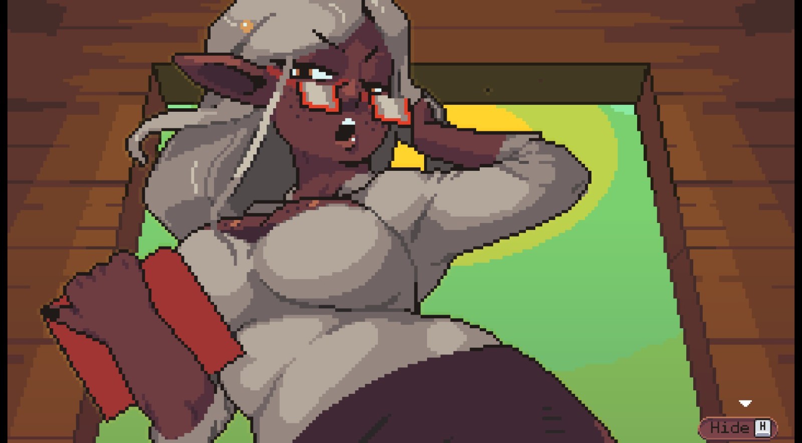 该 H 场景皆为像素动画呈现,辅以简单的音效,游戏另设有回想模式可随时查看 H 动画与分镜。