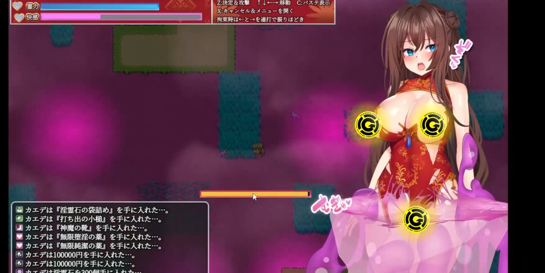 而游戏中影响小枫表现的核心在于「淫咒」带来的各种效果,例如「黏糊糊」状态会使行动迟钝,「施虐体质」会转而成为 M 属性,并为小枫带来不同的视觉变化,以及触发专属的 H 场景。