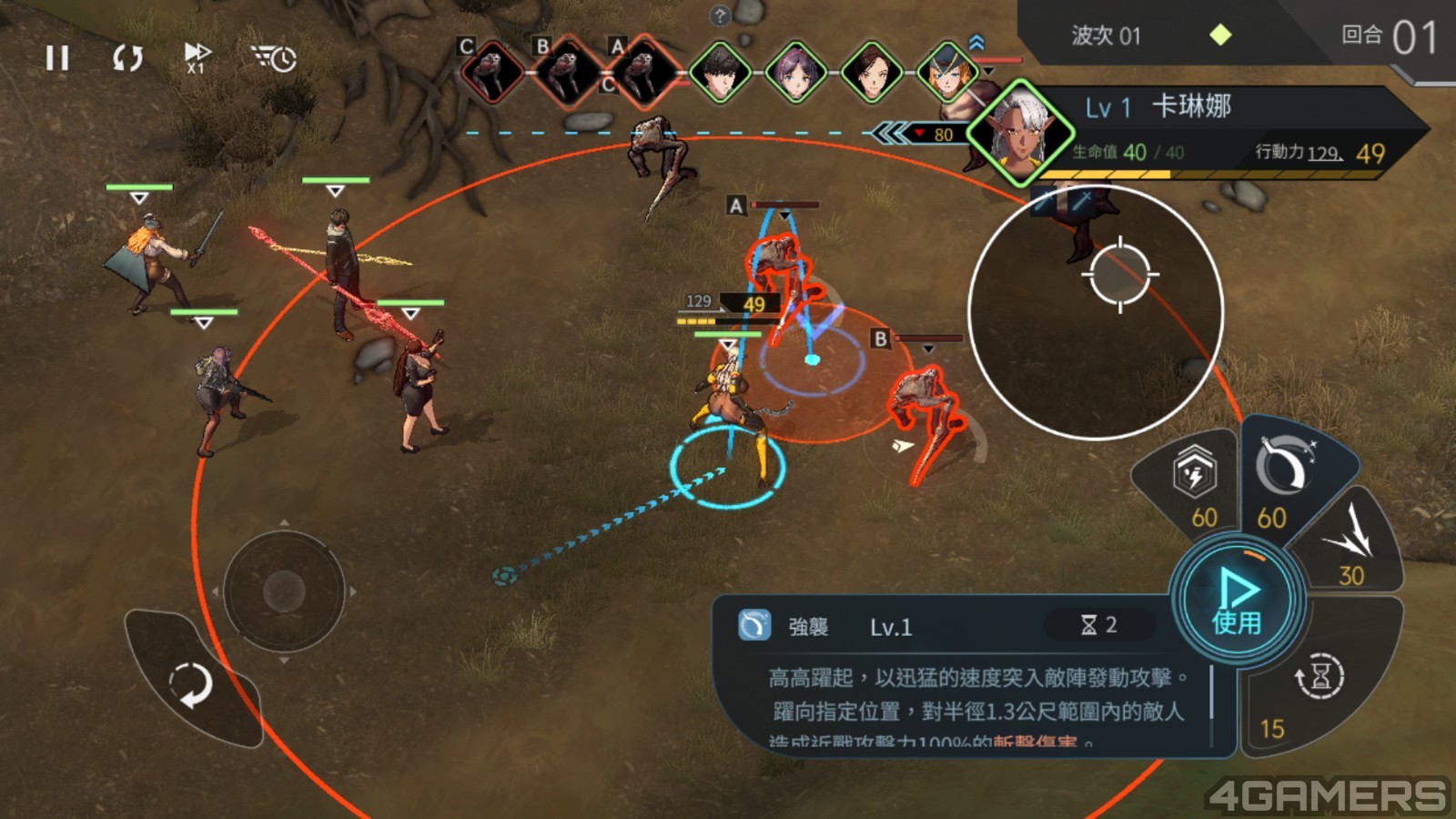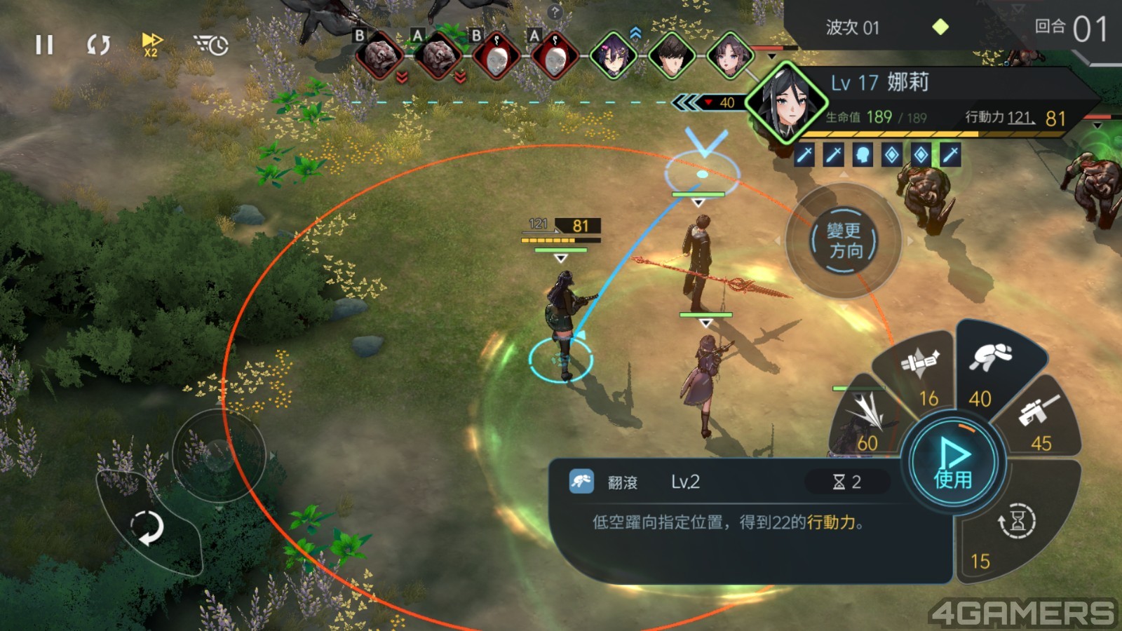 说到战斗,《地平线行者》採用「回合制类战棋」玩法。每名角色在回合开始时能获得一定的行动值,角色不管是做任何动作,包括移动、施放技能等都必须消耗行动值。
