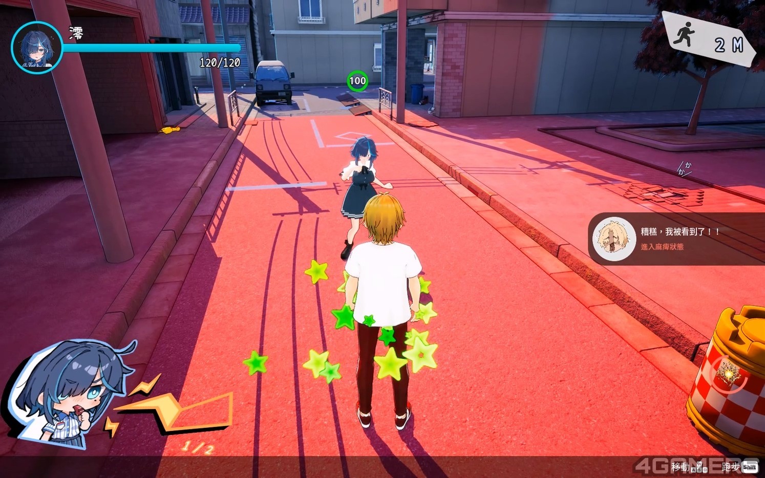 尾随澪的途中,她的头上会有回头警戒值,累积满100 时就会触发女主转头侦测,且数值会随着你与澪的距离缩短快速增加。