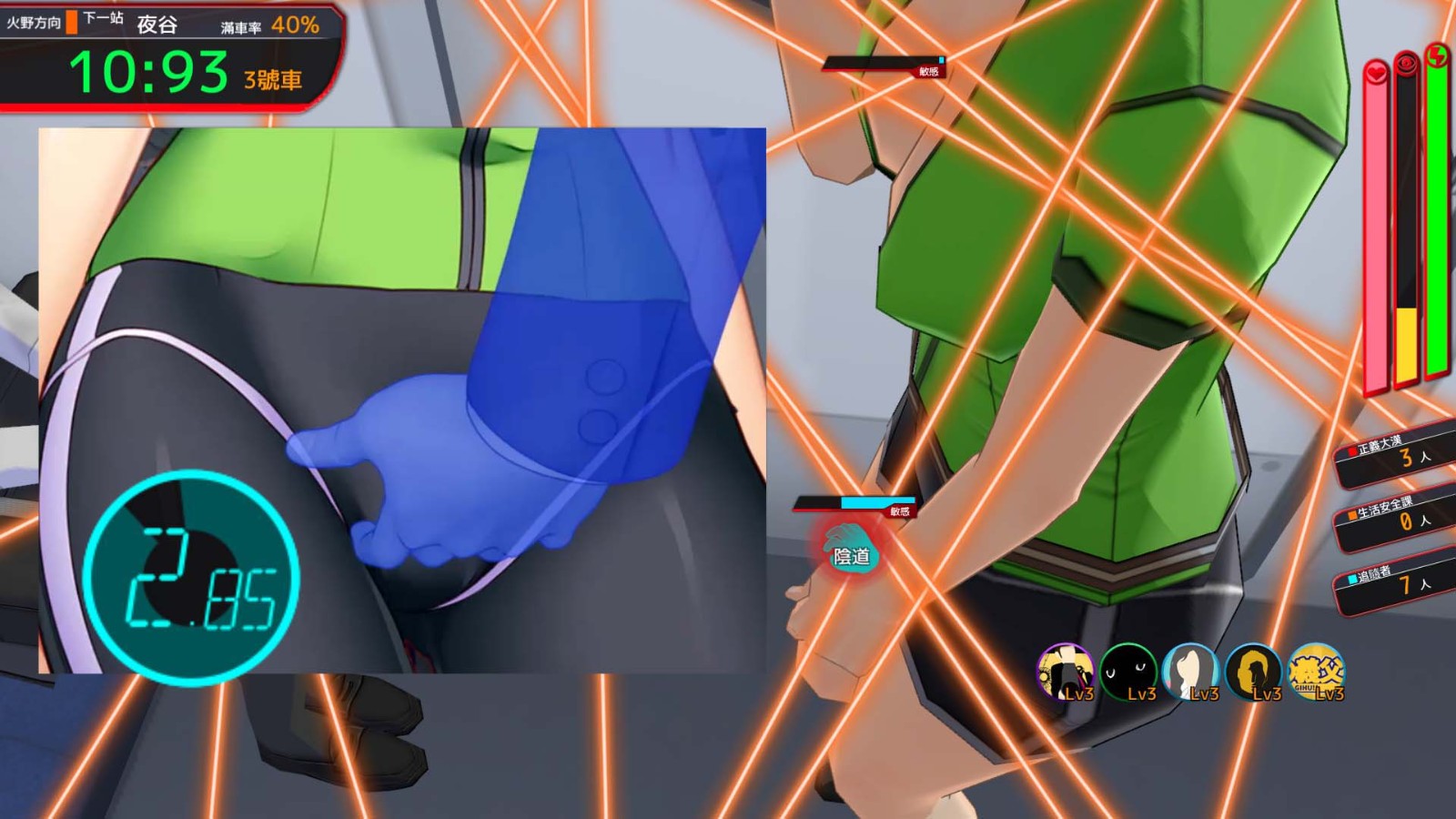 玩家将在拥挤的车厢中一边躲避乘客们的视线,一边对女性们进行骚扰及侵犯。完整版中最多可攻略 10 位角色,享受全配音且多达 40 万字的剧情量。