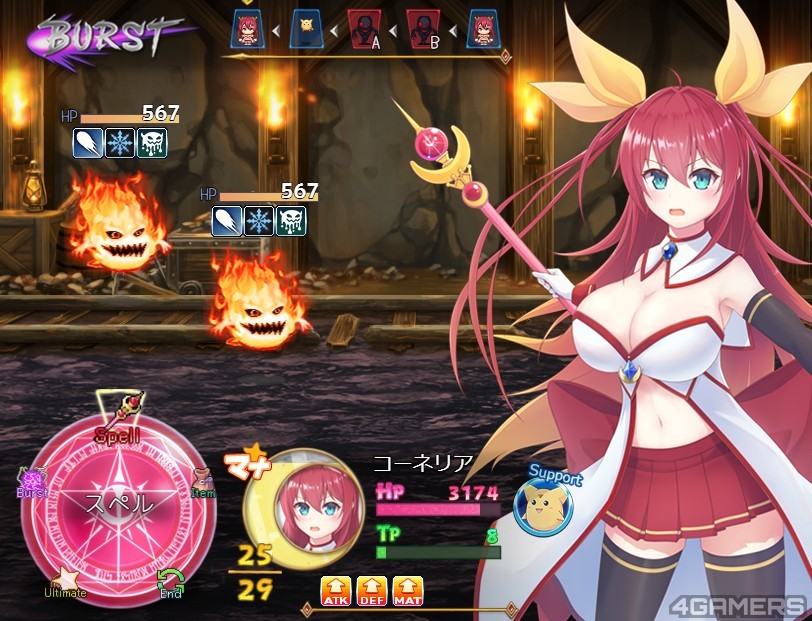 游戏就从主角成功变身成「月红神姬科内莉亚」,还招唤出自己的吉祥物「漆姆」,前往救出自己的好朋友(顺便找帅哥)开始。