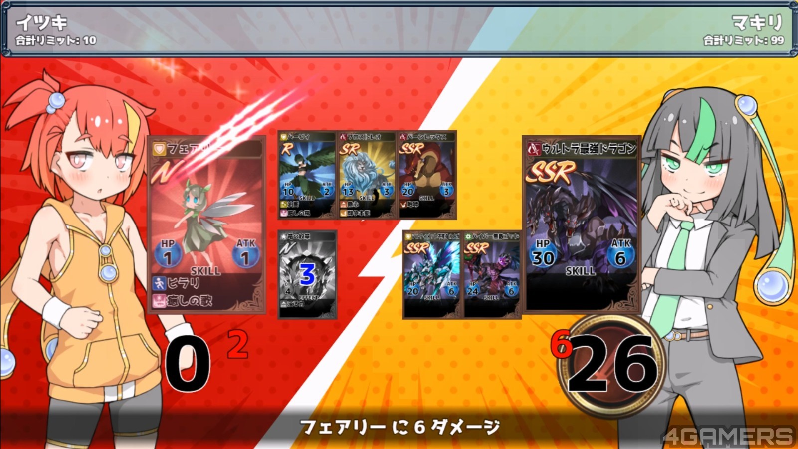 至于游戏的玩法也很有意思,它没有盲目地模仿市面上主流的对战方式,而是自己创造了一套简化版的对战系统。最终这款游戏没有抽卡、翻陷阱魔法卡、布置场面等操作,而且整套牌只以五张牌组成。