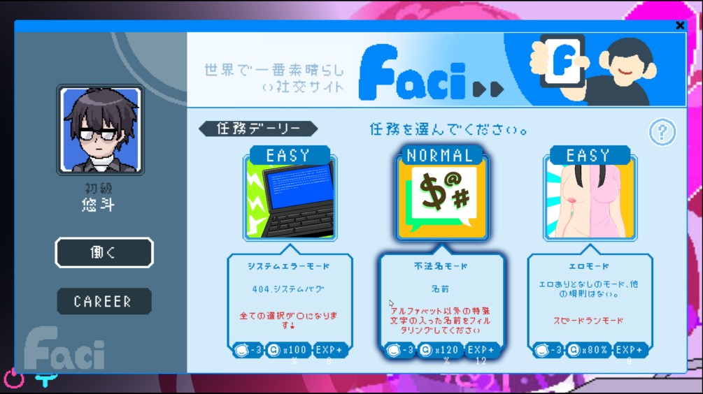 在《エロ検閲者》故事中,玩家将以电脑天才主角「藤本悠斗」为视角,在应徵「facibook」的审查员工作被录取,表面上为了生活赚钱,大胆地利用职务漏洞,看见了许多不为人知的「色群资讯」。