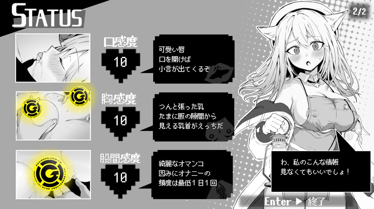 由日本同人社团「クレイジー二厘」在去年推出的黑白风格肉鸽绅士游戏《娜欧发情中!~兽耳少女需要色色治疗~》(ナオは発情中!~ケモミミ少女とえっちな治疗~)经 Otaku Plan 代理在今(18)日推出 Steam 中文版,本作曾于 DLsite 推出后获得当日销售榜首与当週排名第 2 的成绩。