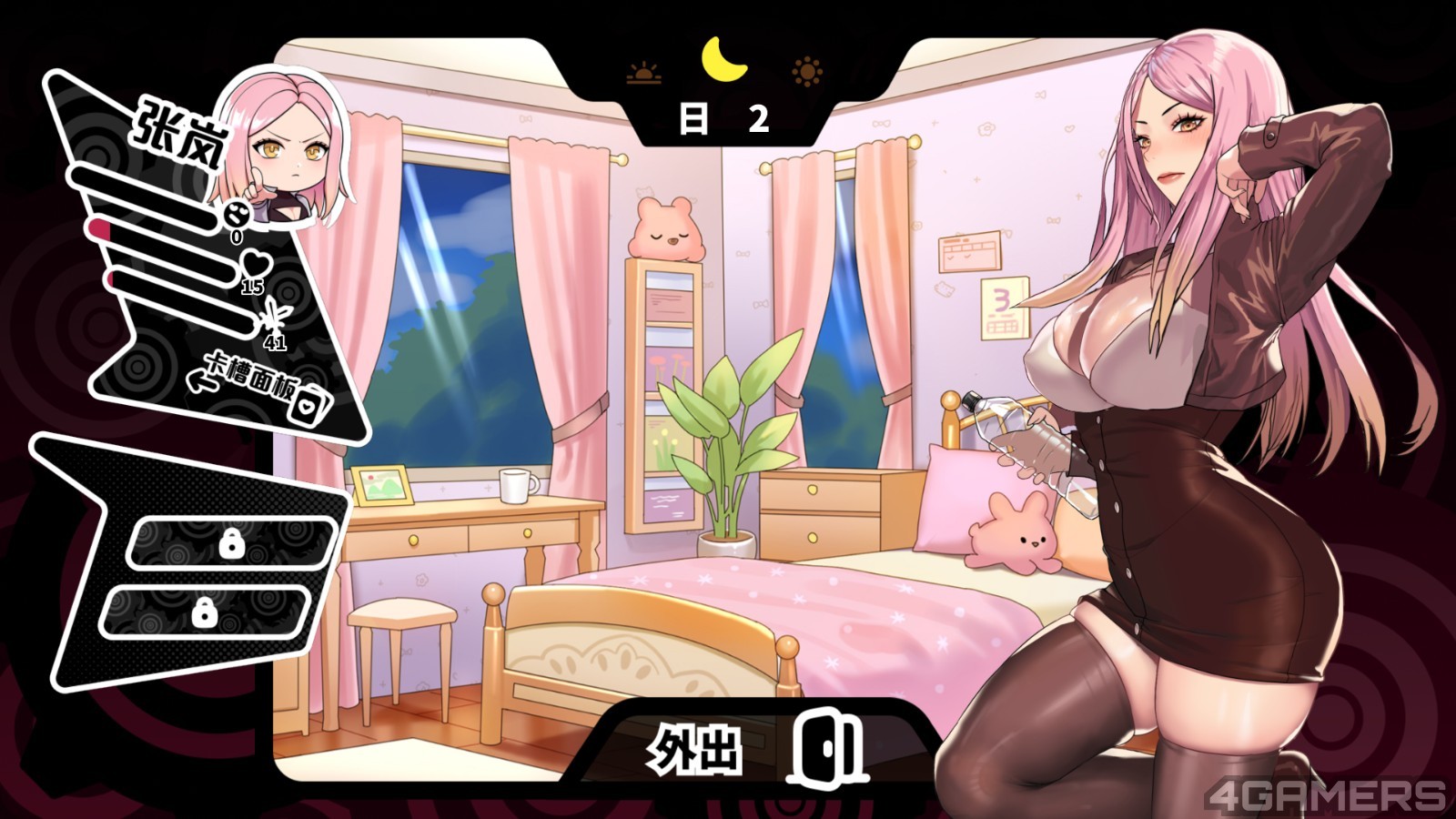 本次试玩版本开放第 1 至第 15 天的剧情,当中包含三条主线任务、三条支线任务以及张岚的专属调教内容。