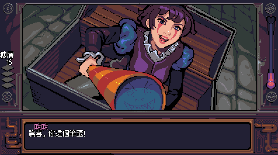而所有系统当中,最令人激赏的便是地下城「梅尔寇的领域」冒险,其风格类似早期地下城利用方向键移动的迷宫房间探索玩法,身为勇者的主角可在领域中逐渐深入,藉由简单的点击战斗来应对。