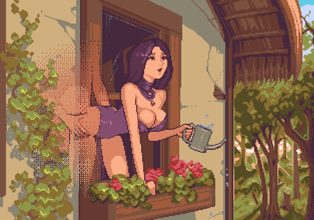 《奥雷利亚》是一款画风为点阵像素构成的 ADV 游戏,看似上个世纪的游戏美术画质,但实际上像素风格一直很受到绅士社群市场的欢迎,因为像素画风的美女总有一种蒙上马赛克滤镜的美感,而游戏里的场景与人物作画也颇为细腻受到称讚。