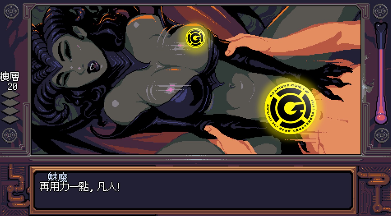 而随机的地城冒险中,「豔遇」则是《奥雷利亚》另一个福利藏宝箱。玩家在迷宫里遇到的怪物,可透过女恶魔给予的技能「艾露沙之礼」攻击魔物,待击败魔物后便能解锁魔物的 H 交流画面。