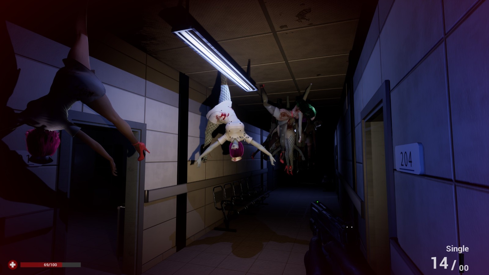《Ruined Nurse》的游戏玩法非常单纯,玩家需要操作 Zeul 探索医院,在有限的弹药资源到处穿梭击退性感的护士鬼,并想办法一路找到向上的楼层,最终解开 Nell 为何需要架设网路的谜底。