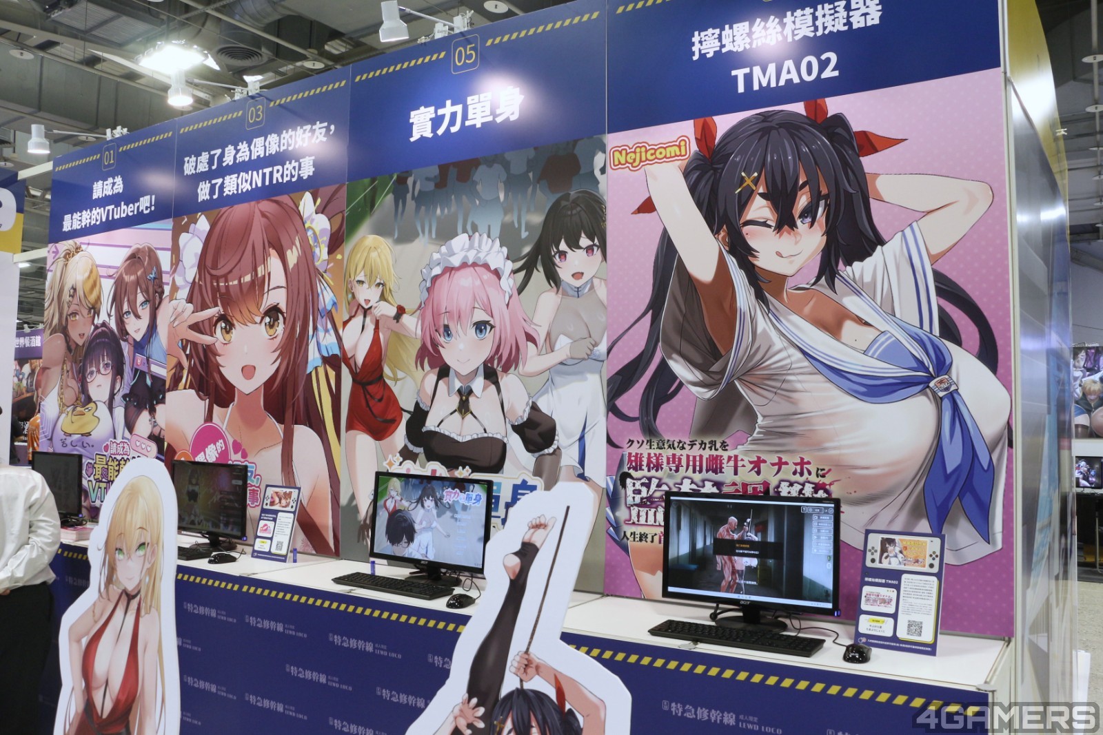设立在 G-EIGHT 成人展区,新锐成人发行商「特急修干线」(Lewd Loco)带来冲击性的视觉排场,而他们亦带来 9 款发行作品提供试玩,包含人气作品《台湾恋爱物语⁵》成人版。
