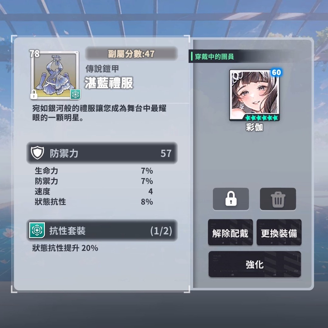 联动合作限定装备「湛蓝礼服」同步推出,参与本次活动可获得代币「彩伽的签名卡」,并在活动商店兑换限定抗性装备。