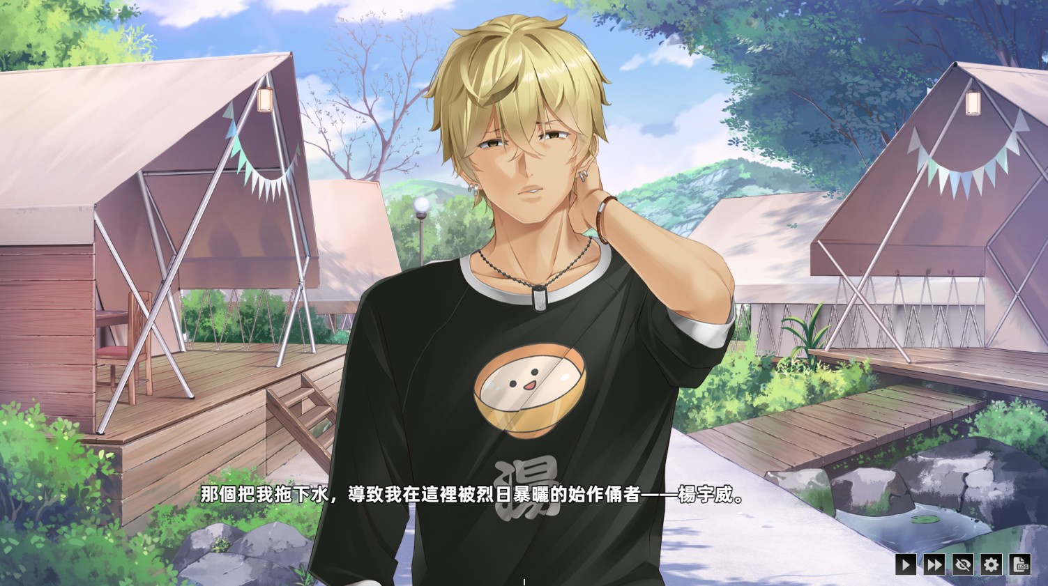 在故事序章,玩家的视角是一位海归青年大学生(可自行取名),为了研究「蛙化现象」毕业论文而与教授、助教等人举办了一场大型联谊,好友杨宇威是一个谈话自以为幽默的残念系男子,可惜了他一头黄毛,似乎没办法在这款游戏里有什幺 NTR 发展,纯爱战士们似乎可以放心(吧?)。