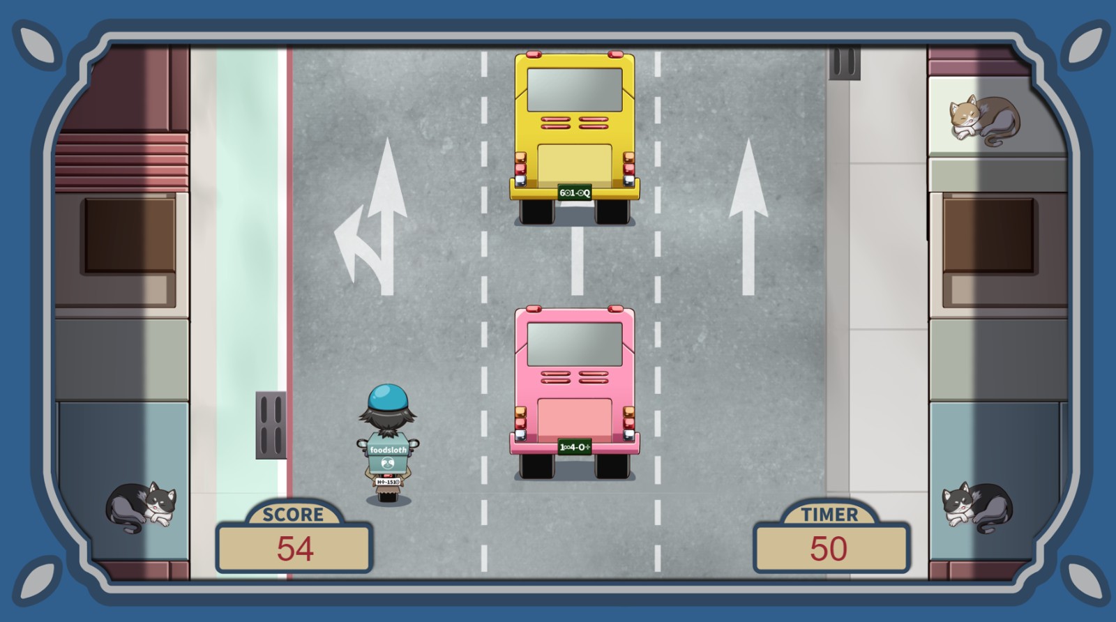 虽然是简单的方向键左右移动的外送小游戏,但这个诡异单行三线道马路的驾驶全都是变换车道不打方向灯的狠人,玩家只要一擦撞就会 GG 结算。