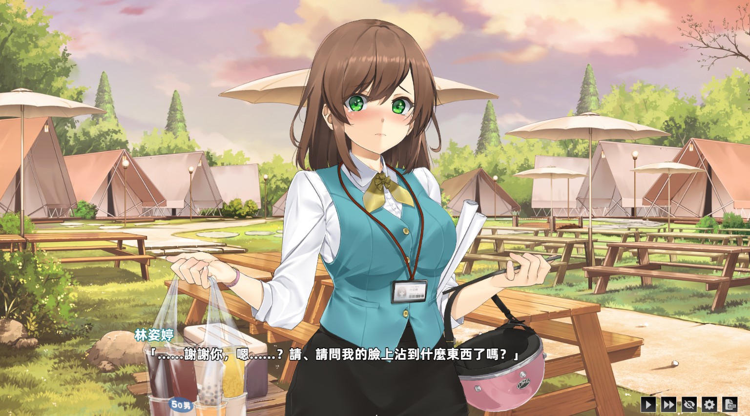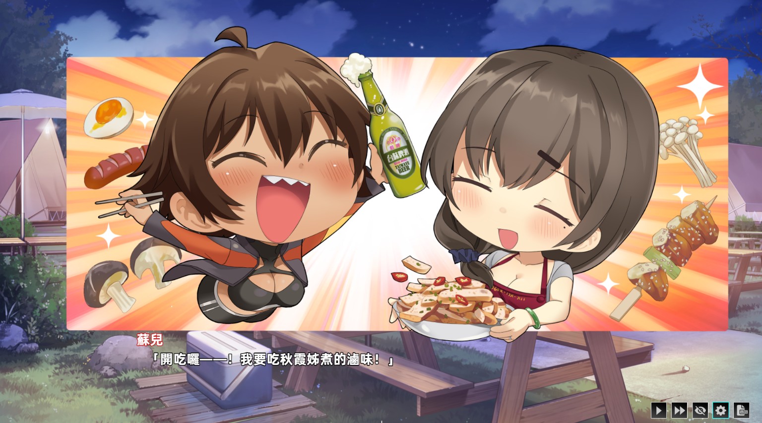 在营地中,你能够自由选择且不会错过任何一位女主角接触展开剧情,最终 5 位女主角因缘继会地一起同桌吃饭,度过愉快的宴会时光。