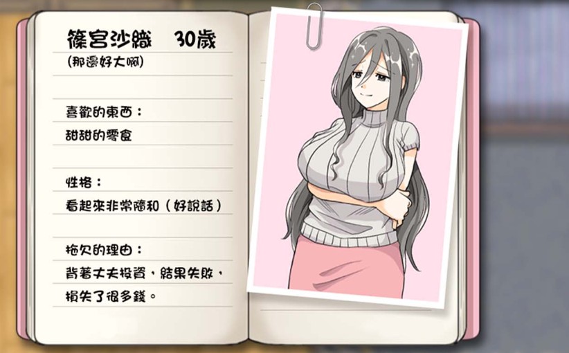 而游戏玩法也相当单纯,只要透过与人妻对话,依据滞纳的租金来选择不同的侍奉即可,完全不需要战斗或收集。