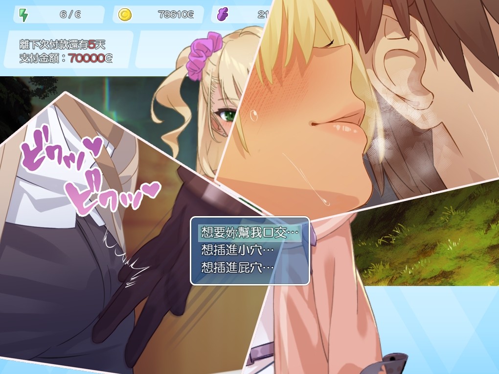 随着开发胸部、小穴或侍奉值增加,莫妮卡也会进一步解锁更多姿势,部份情趣玩具则是需要购买物品来解锁,因此在许多不同选择之下,让你每次冒险完有着想解锁更多 Play 的欲望。