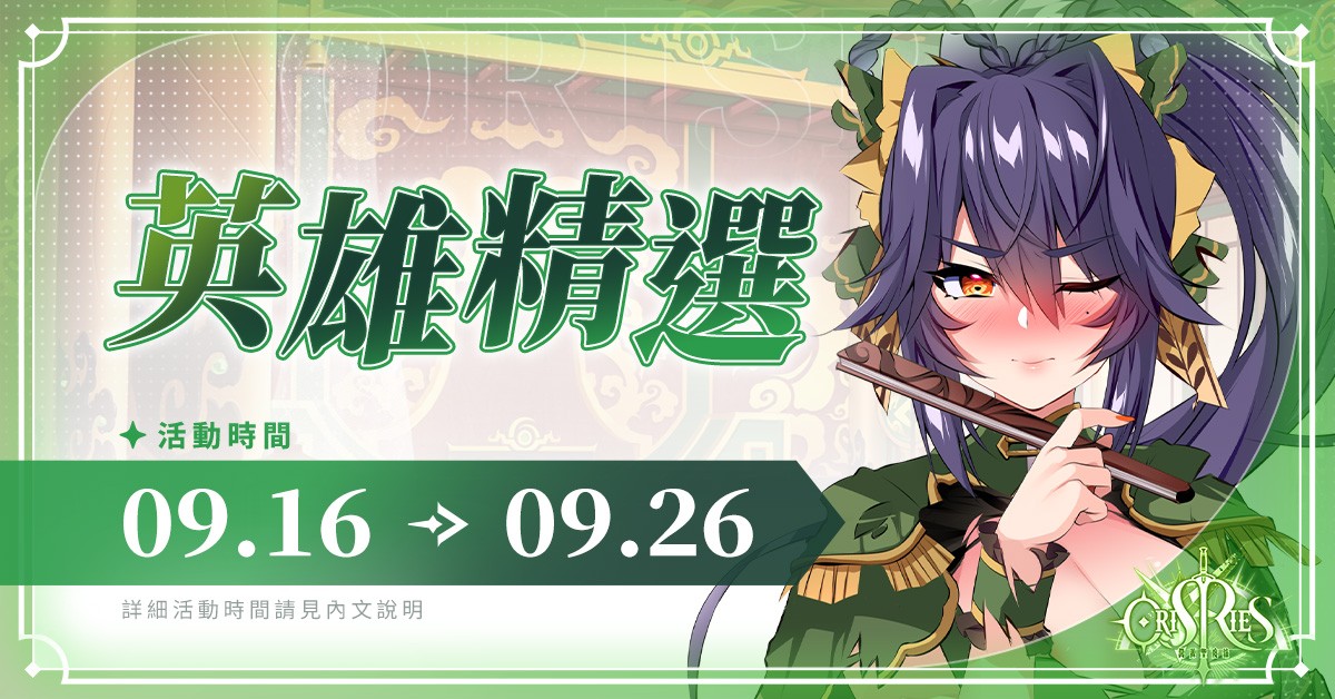 术师定位的新角色赵涟漪,是神霄高门赵氏的大小姐。英雄精选池自 9 月 16 日开放至 9 月 26 日。