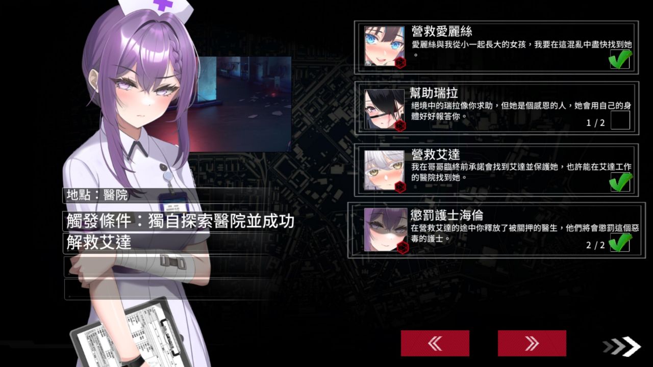 Secret Garden 开发的《索命倒数-背德的欲望清单》则是一款末日题材的策略游戏。游戏的舞台是一座面临神秘病毒侵袭的城市,玩家必须在无秩序的末日环境下建立庇护所奋力求生,或是跟整座城市一起沉沦。