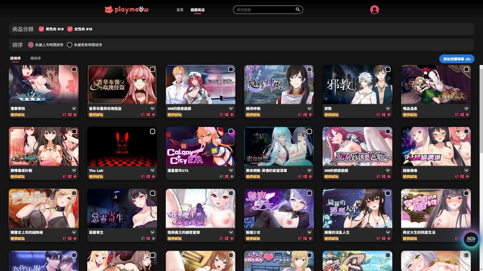 台湾瑟瑟游戏界赫赫有名,发行过多款大作的本土发行商 Playmeow 玩喵近日推出官方中文成人游戏平台,让你更方便、快速的浏览旗下作品,还能抢先试车多款绅士游戏。